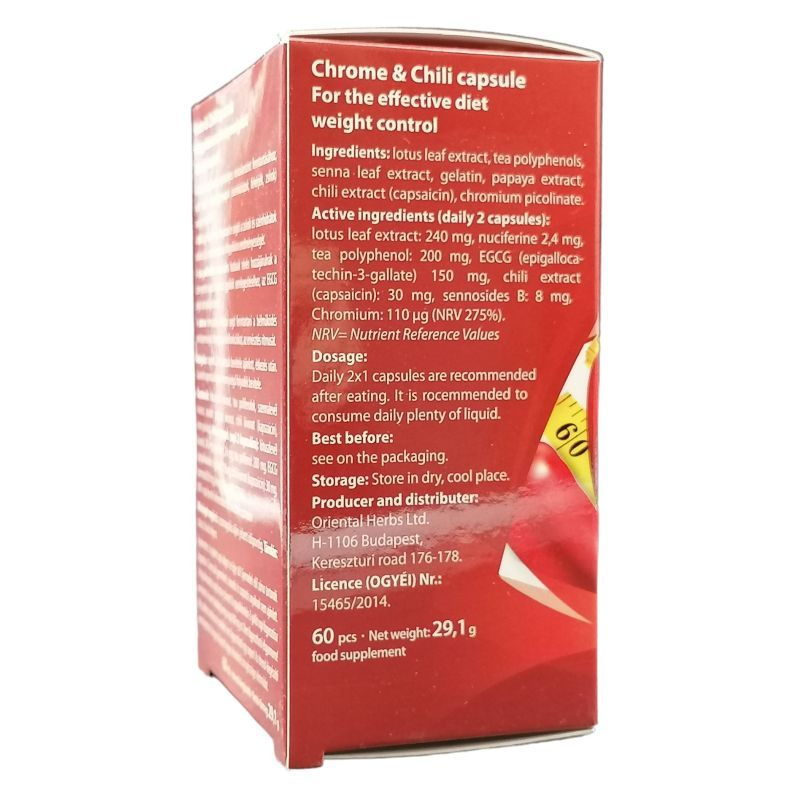 A króm hozzájárul az egészséges vércukorszint fenntartásához, részt vesz a makro tápanyagok (szénhidrátok, fehérjék, zsírok) anyagcseréjében. A chili paprikából nyert kapszaicin segíti a zsírok és szénhidrátok oxidációját, ezzel támogatva a fogyókúra eredményességét. A tea polifenolok antioxidáns hatásuk révén hozzájárulnak a szervezetet károsító szabad gyökök semlegesítéséhez, az EGCG segíti a testsúly kontrollt. A szenna természetes módon segít fenntartani a bélműködés rendszerességét, támogatja a bélfunkciókat, az emésztés ritmusát.