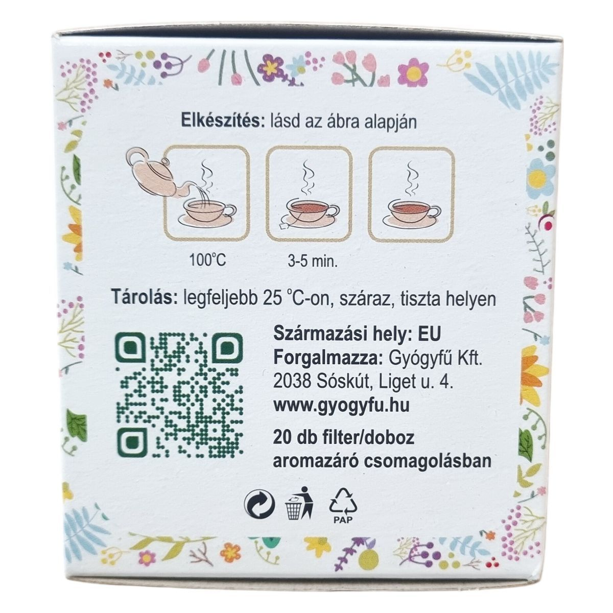 A termék 25 grammos kiszerelésben, aromazáró csomagolásban tartalmaz 20 db filtert, melyek egyenként 1,25 grammosak. A csomagolás FSC minősítéssel rendelkezik, újrahasznosított papírból készült. A javasolt fogyasztási mennyiség napi 2-3 csésze, 4-6 hétig kúraszerűen, majd ugyanennyi időtartamú szünetet szükséges tartani. A termék eredete az Európai Unió.
