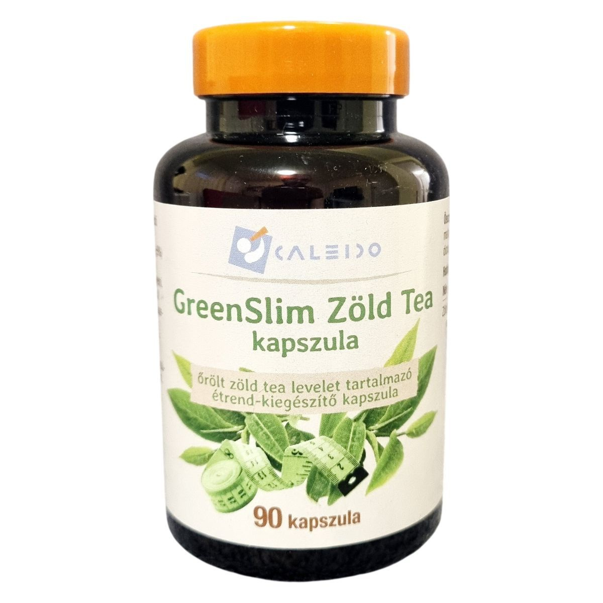 A Caleido GreenSlim zöld tea étrend-kiegészítő kapszula nettó tömege 48,2 g, mely 90 darab, egyenként 536 mg tömegű kapszulát tartalmaz. A termék származási helye Spanyolország. A kapszulahéj szarvasmarha zselatinból készül. Az alkalmazási javaslat szerint a kapszulákat a főétkezések előtt, kb. fél órával kell bevenni, bő vízzel. A termék olyan hatóanyagokat tartalmaz, amelyek támogathatják a szervezet metabolizmusát és a zsíranyagcserét, azonban nem helyettesíthetik az egészséges életmódot és a kiegyensúlyozott táplálkozást.