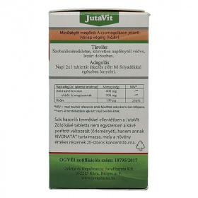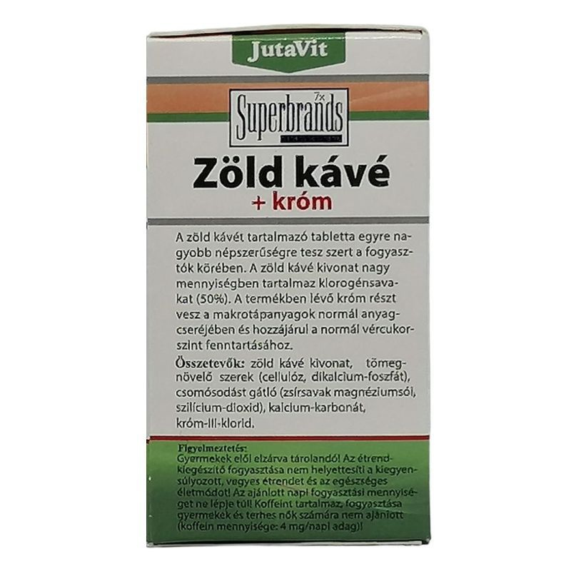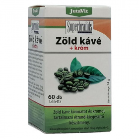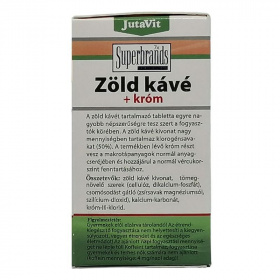 A zöld kávé kivonat nagy mennyiségben tartalmaz klorogénsavat (50%) és koffeint (9%). A termékben lévő króm részt vesz a makrotápanyagok normál anyagcseréjében és hozzájárul a normál vércukorszint fenntartásához. Sok hasonló termékkel ellentétben a JutaVit Zöld Kávé tabletta nem egyszerűen a kávé porított változatát (őrleményét), hanem annak kivonatát tartalmazza, mely a növény értékes részének 12-15-szörös koncentrátuma.