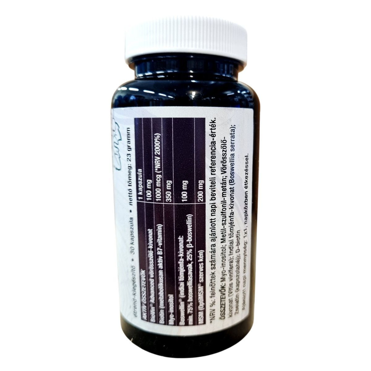 Myo-inositol, szőlőhéj-magtartalmú vörösszőlő-kivonat (Vitis vinifera), indiai tömjénfa-kivonat (Boswellia serrata), szerves kén (metil-szulfonil-metán), D-biotin
