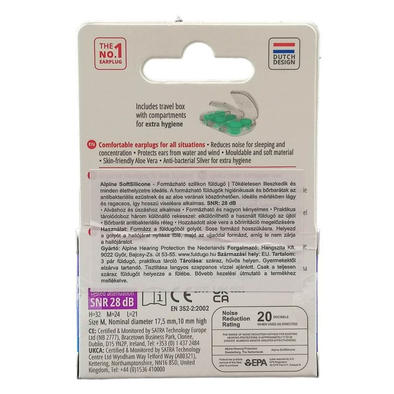 A formázható füldugók higiénikusak és bőrbarátak az antibakteriális ezüstnek és az aloe verának köszönhetően. Ideális mértékben lágy és ragacsos, így hosszú viselésre alkalmas.