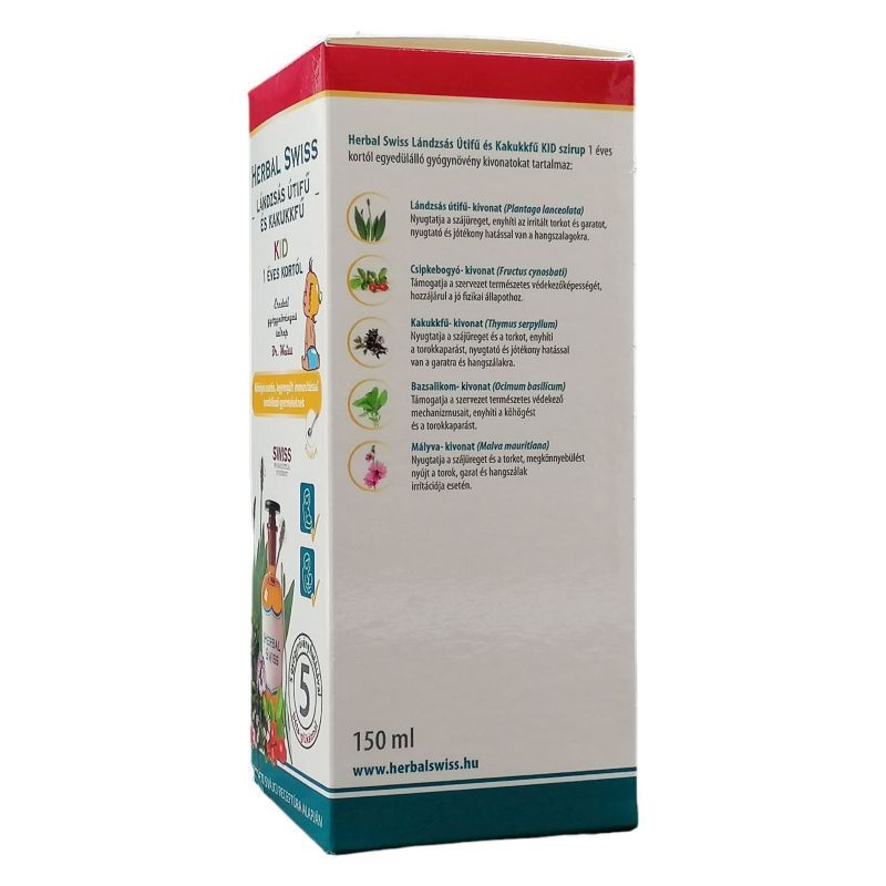 A Herbal Swiss Medical szirup 5 gyógynövény kivonatnak az egyedülálló kombinációja, mely többszörös hatást fejthet ki köhögés esetén: enyhítheti a köhögést, megnyugtathatja az irritált torkot, enyhítheti a torokkaparást, enyhítheti a torokfájást.