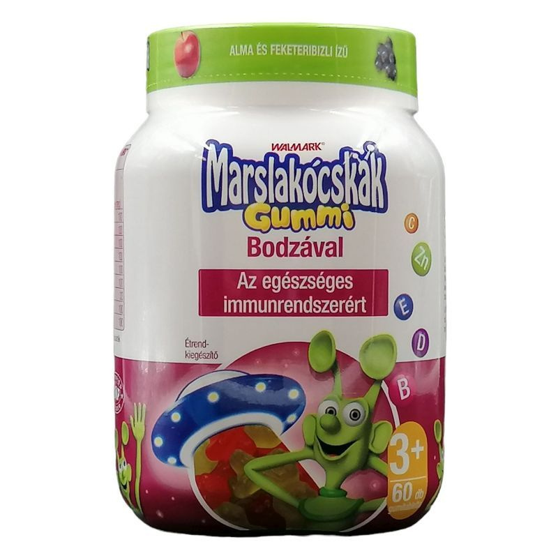 A Marslakócskák Gummi bodzával finom alma és feketeribizli ízű gumitablettái a vitaminok és a cink mellett bodza kivonatot is tartalmaz.