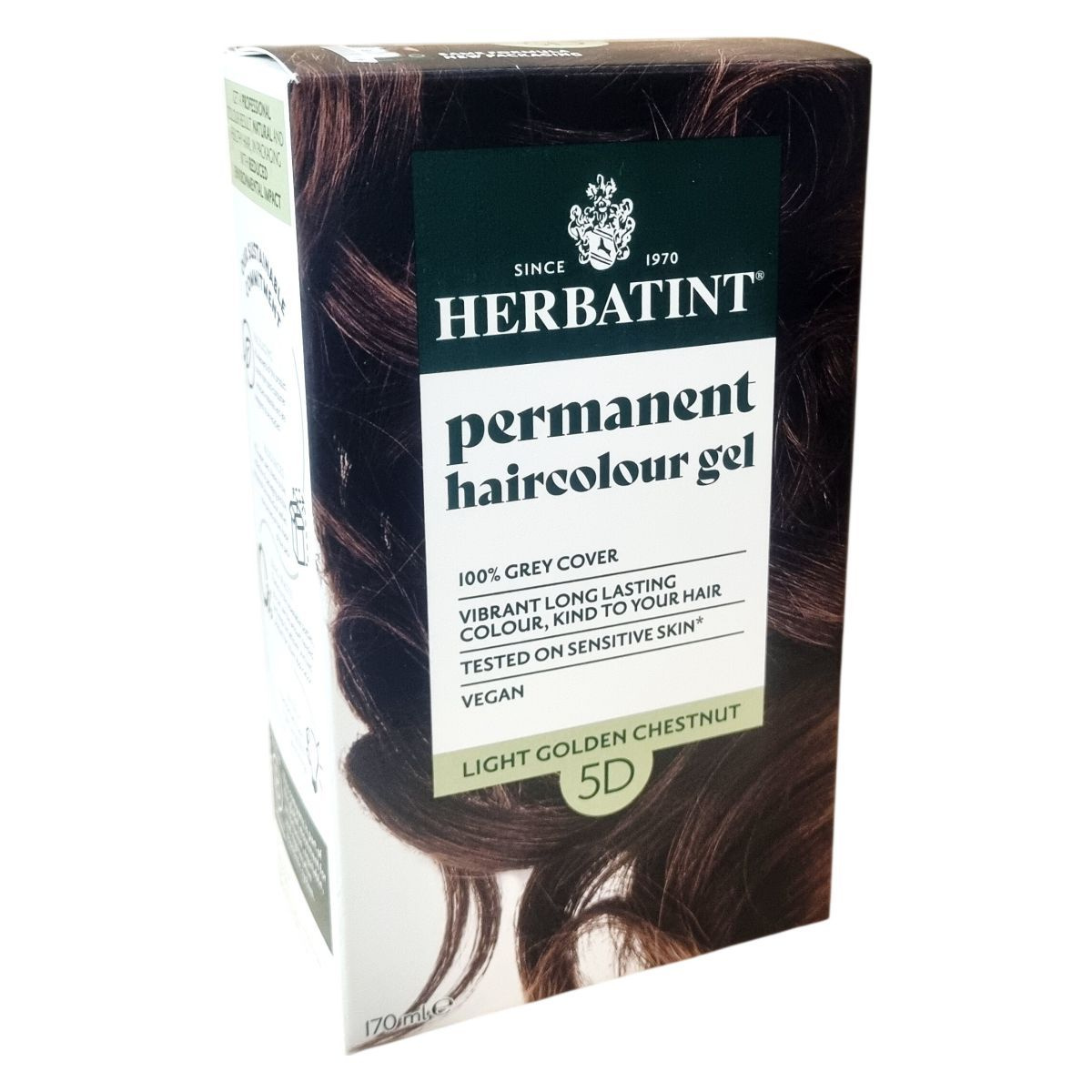 Gyengéd összetételű, arany világos gesztenye színű, tartós hajfesték gél 100%-os ősz fedéssel. Növényi kivonatokat tartalmaz, érzékeny bőrön tesztelt, vegán formula.