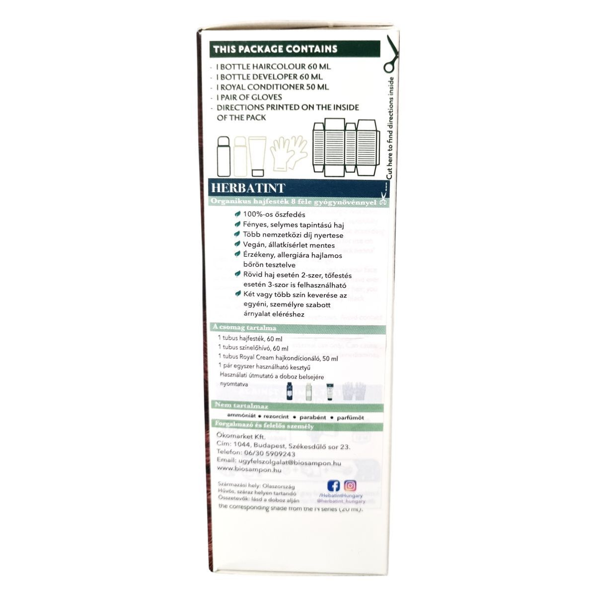 A Herbatint permanent haircolour gel egy gél állagú, csepegésmentes hajfesték, amely egyenletes felvitelt biztosít. A csomag tartalmaz egy 60 ml-es hajfestéket, egy 60 ml-es előhívót, egy 50 ml-es Royal Conditioner kondicionálót és egy pár kesztyűt. A Royal Conditioner savas pH-jú kezelés, amely segít a haj kutikulájának visszazárásában és a szín tartósságának növelésében. A feldolgozási idő 40 perc, a termék akár két alkalommal is felhasználható.