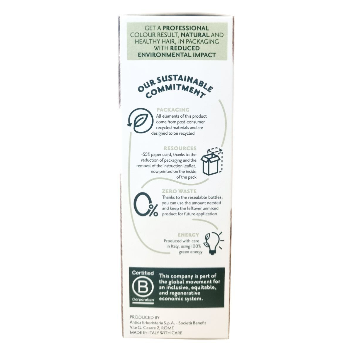 A csomagolás újrahasznosított anyagokból készül, csökkentett papírfelhasználással. Újrazárható flakonjai lehetővé teszik a maradék, nem összekevert termék későbbi felhasználását. Olaszországban gyártva, 100% zöld energiával.
