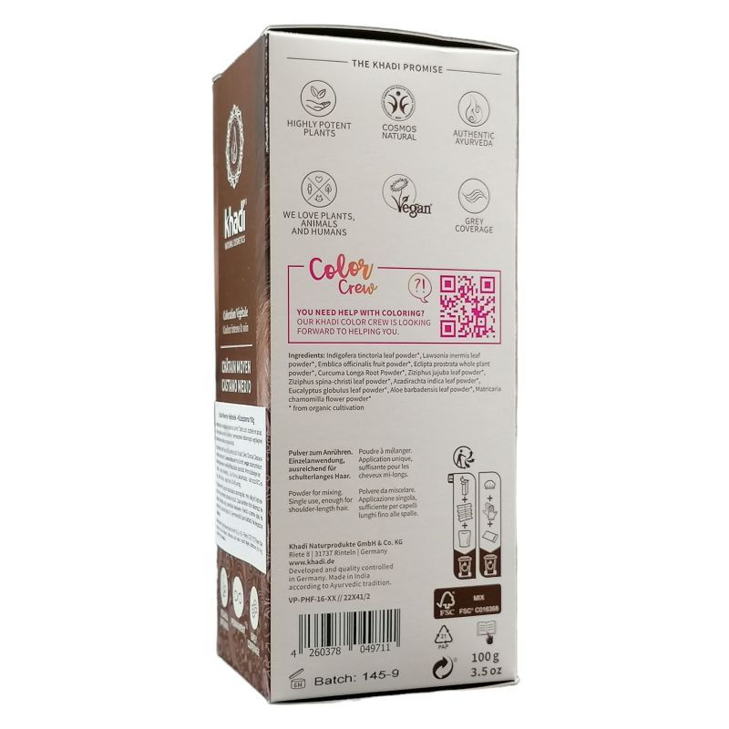 A khadi Középbarna növényi hajfesték más Khadi növényi hajfestékekkel is kombinálható.