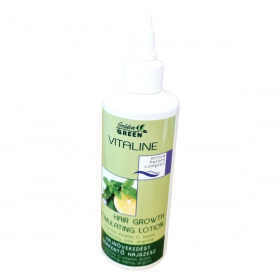 A Golden Green Vitaline Hajnövekedést Serkentő Hajszesz olyan növényi eredetű aktív komplexet tartalmaz, amely acerola C-vitaminnal, biotinnal, rozmaring- és mentakivonattal támogatja a fejbőr vérkeringését és vitalitását. Rendszeres használata segíthet csökkenteni a hajhullást, élénkítheti a hajhagymákat, és elősegítheti a haj természetes növekedését. Kíméletes, alkoholos alapú formulája frissítő érzetet nyújthat a fejbőrön, miközben fényesebb, egészségesebb haj megjelenéséhez járulhat hozzá.