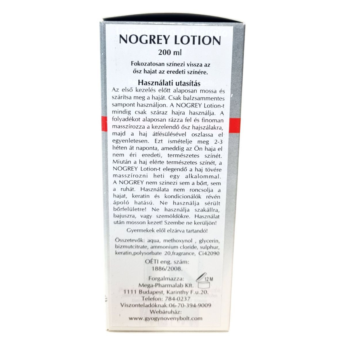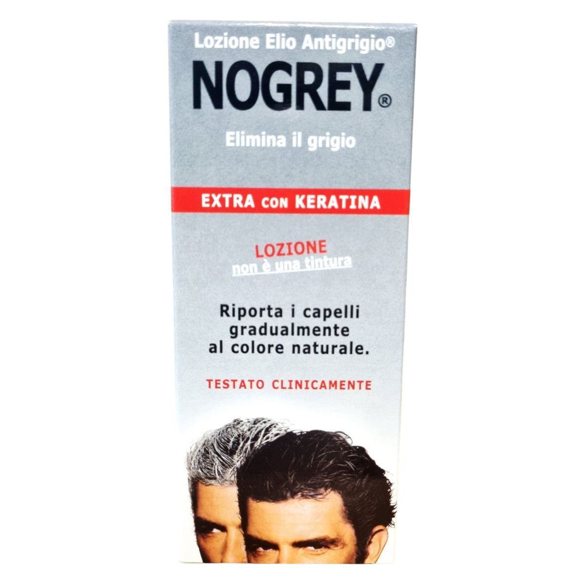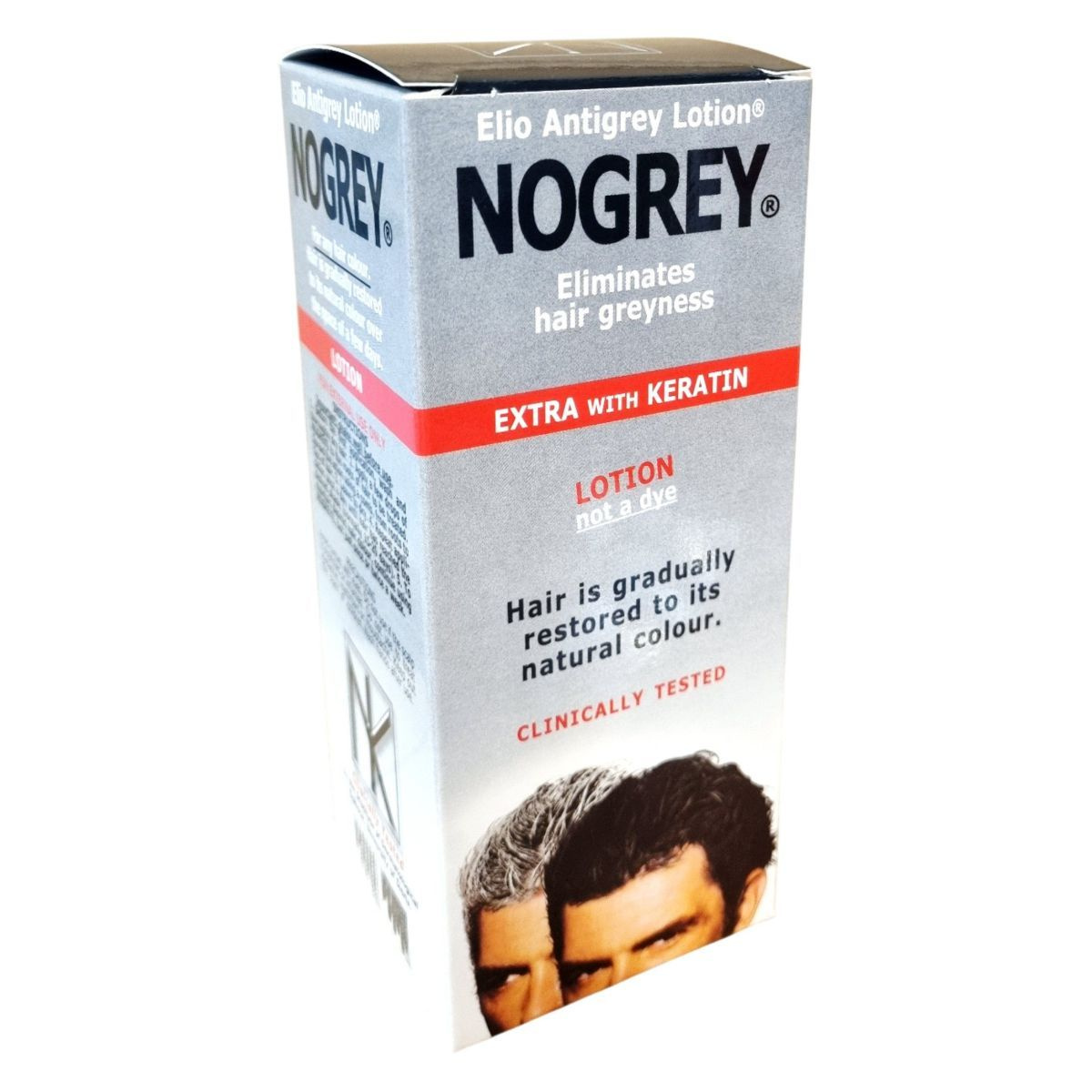 A NoGrey Elio Antigrey Lotion klinikailag tesztelt, keratinnal dúsított hajápoló, amely segíthet fokozatosan visszaállítani az ősz haj természetes színét. Nem hajfesték, hanem olyan ápoló lotion, amely támogatja a haj természetes pigmentációját. A használat első néhány hetében a haj fokozatosan sötétedhet, visszanyerve eredeti tónusát. A keratin hozzájárulhat a haj erősítéséhez és rugalmasságának növeléséhez. A terméket a Sienai Egyetem Dermatológiai Intézete klinikailag tesztelte, biztonságos külső használatra. A NoGrey használata során a haj fényesebb, egészségesebb megjelenésű lehet, miközben természetes színe fokozatosan visszatér.
