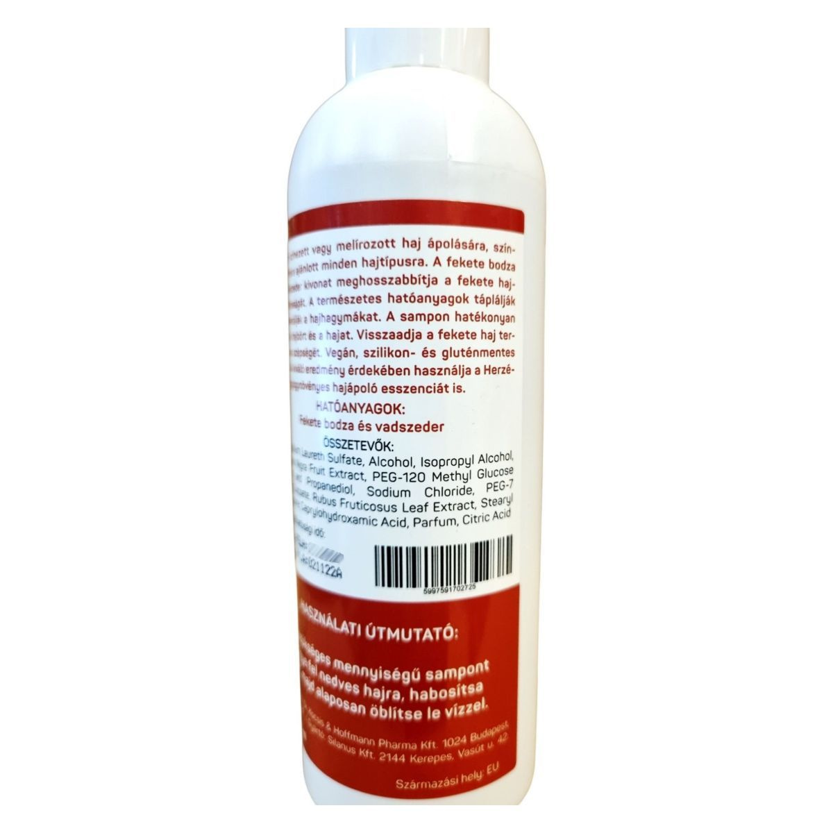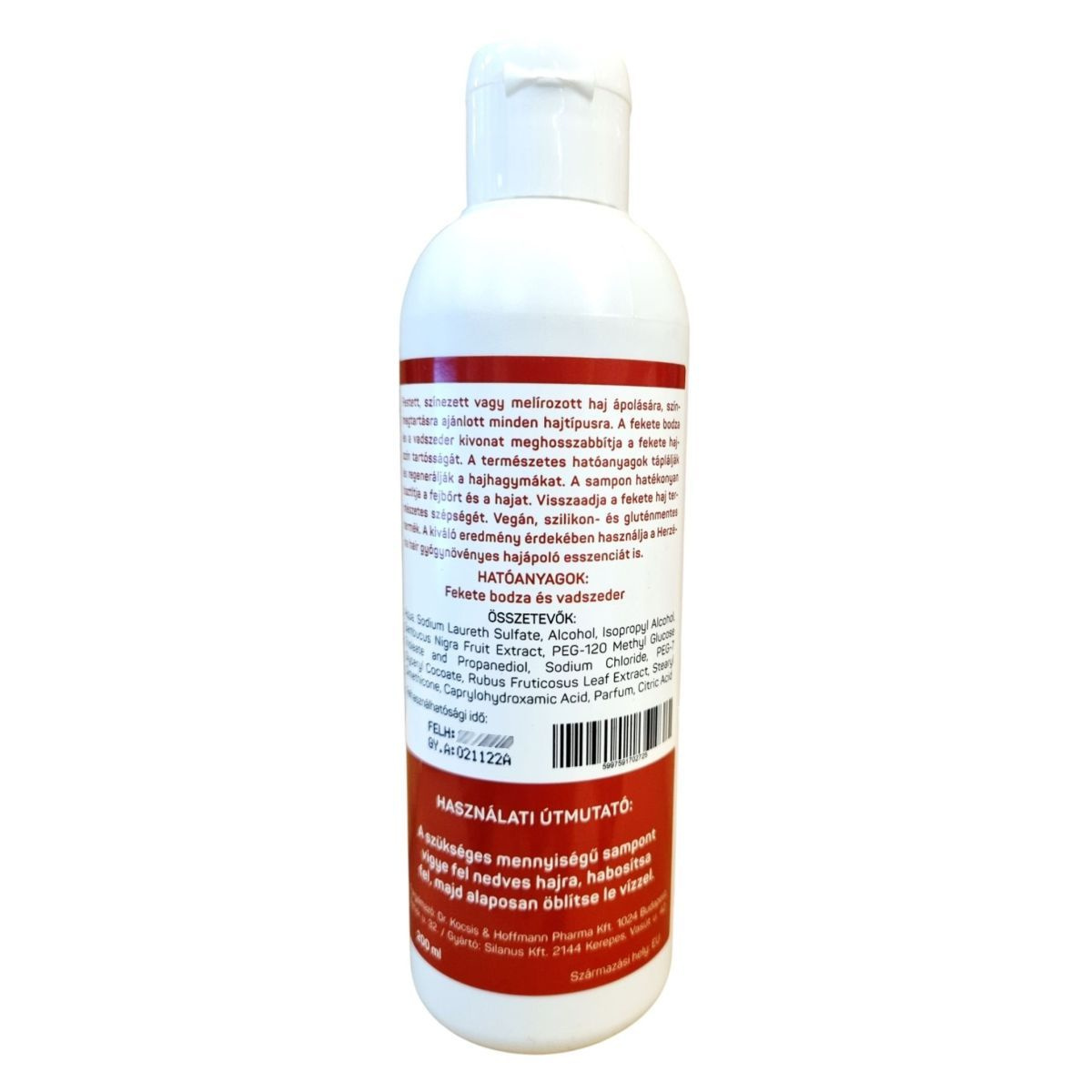A Herzéria Gyógynövényes Színápoló Sampon kifejezetten a festett, színezett vagy melírozott fekete haj ápolására készült. A sampon fekete bodza és vadszeder kivonatot tartalmaz, amelyek hozzájárulhatnak a hajszín tartósságának meghosszabbításához. A természetes hatóanyagok táplálhatják és regenerálhatják a hajhagymákat, miközben a sampon hatékonyan tisztítja a fejbőrt és a hajat. A termék vegán, szilikon- és gluténmentes, így különböző étrendi igényeknek is megfelelhet. A legjobb eredmény érdekében javasolt a Herzéria hair gyógynövényes hajápoló esszencia használata is.