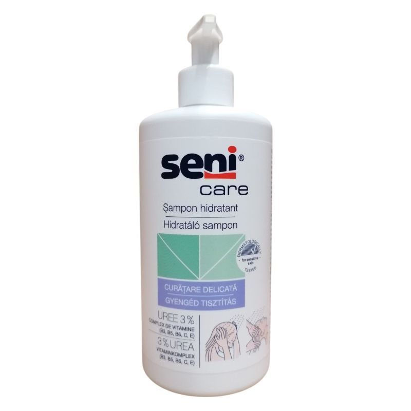 A Seni Care hidratáló sampon ajánlott a száraz, érzékeny, irritációnak kitett fejbőr mindennapos ápolására. Használatával a fejbőr sima és hosszan táplált marad.