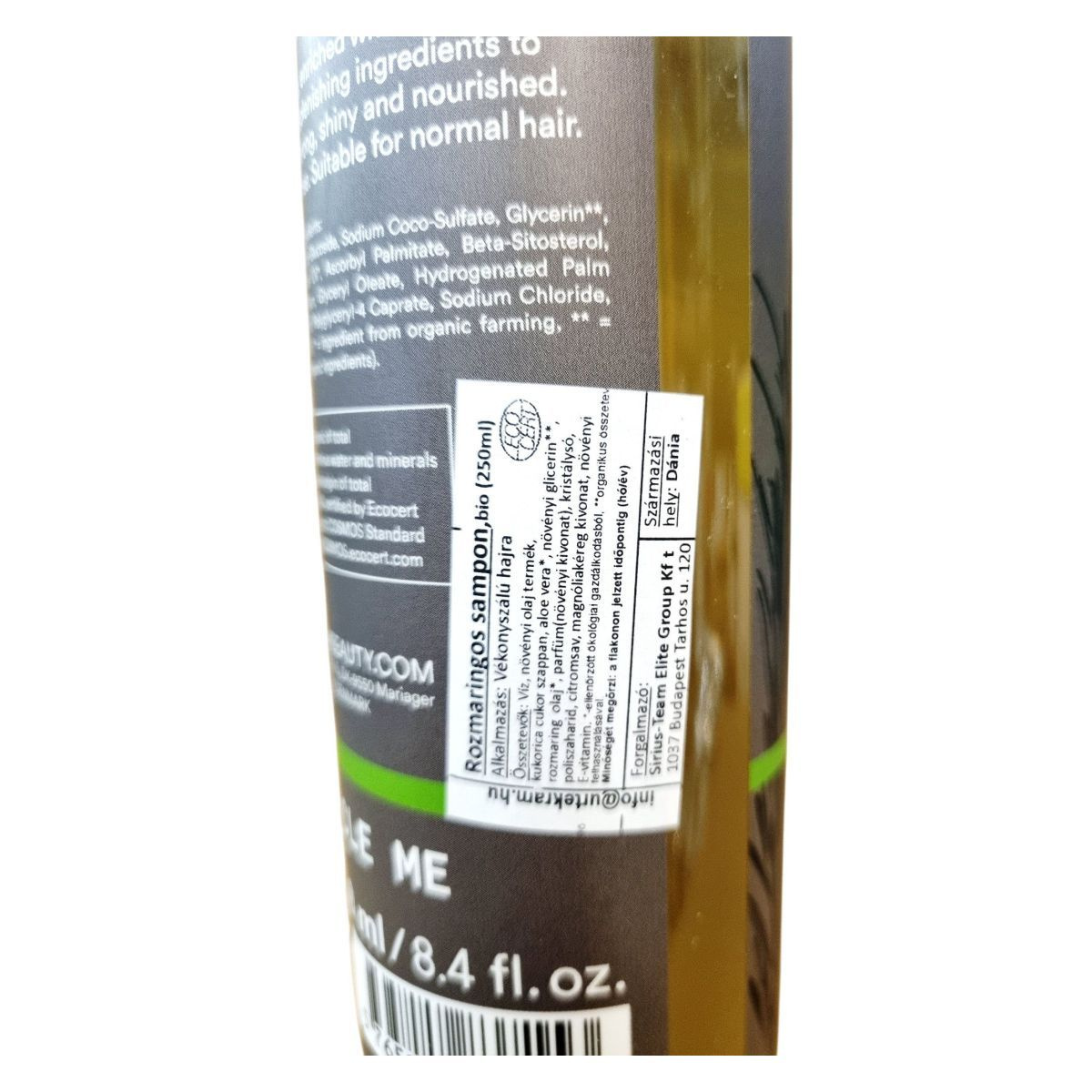 Bio rozmaringos sampon vékony szálú hajra, amely természetes összetevőivel – aloe verával, glicerinnel és rozmaringolajjal – segíthet táplálni, erősíteni és fényessé tenni a hajat.