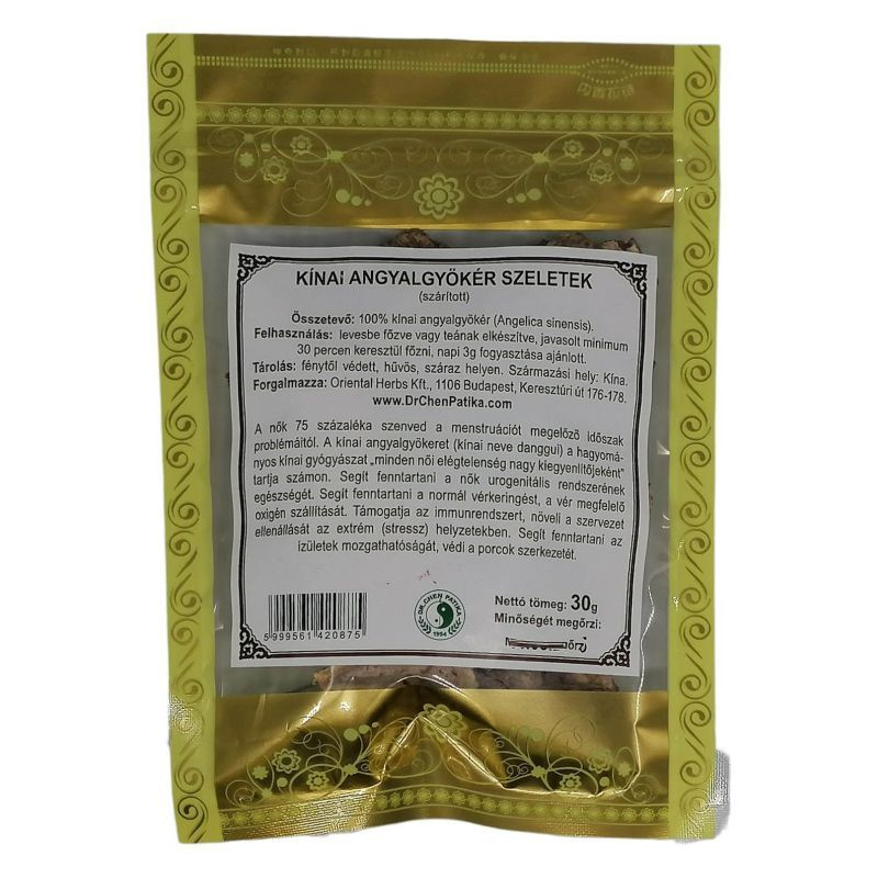 Antioxidánsként támogatja a szervezetet a káros szabad gyökökkel szembeni védekezésben. Adagolás (felhasználás): levesbe főzve vagy teának elkészítve fogyasztható. Javasolt minimum 30 percig főzni. Naponta 3 g elfogyasztása ajánlott. Összetevők: kínai angyalgyökér (Angelica sinensis).