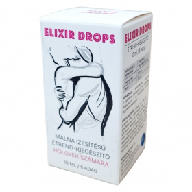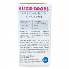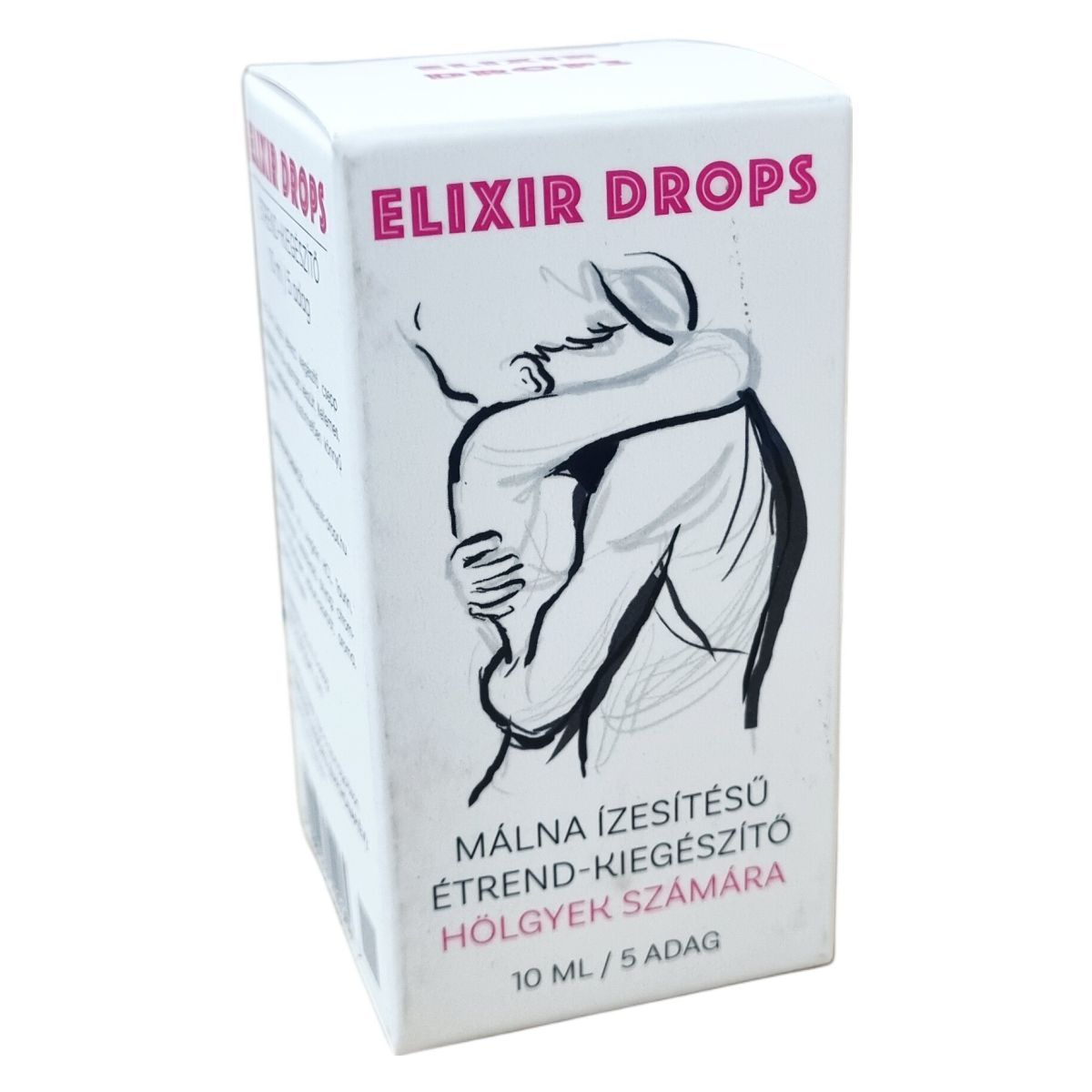 Az Elixir Drops egy málna ízesítésű étrend-kiegészítő női használatra, mely 10 ml-es kiszerelésben, 5 adagra osztva érhető el. A termék hatóanyagai között L-Arginin HCL és Taurin található, melyeket 2 pipettányi adagban (kb. 2 ml) javasolt bevenni. A termék vízből, citromsavból, kálium-szorbátból, aroma- és színezék-komponensekből áll, melyek biztosítják frissességét és kellemes ízét. A készítmény használata során fontos a javasolt adag betartása, és a gyermekektől való elzárás. A termék előállításának helye az EU, és kizárólag nők számára készült.