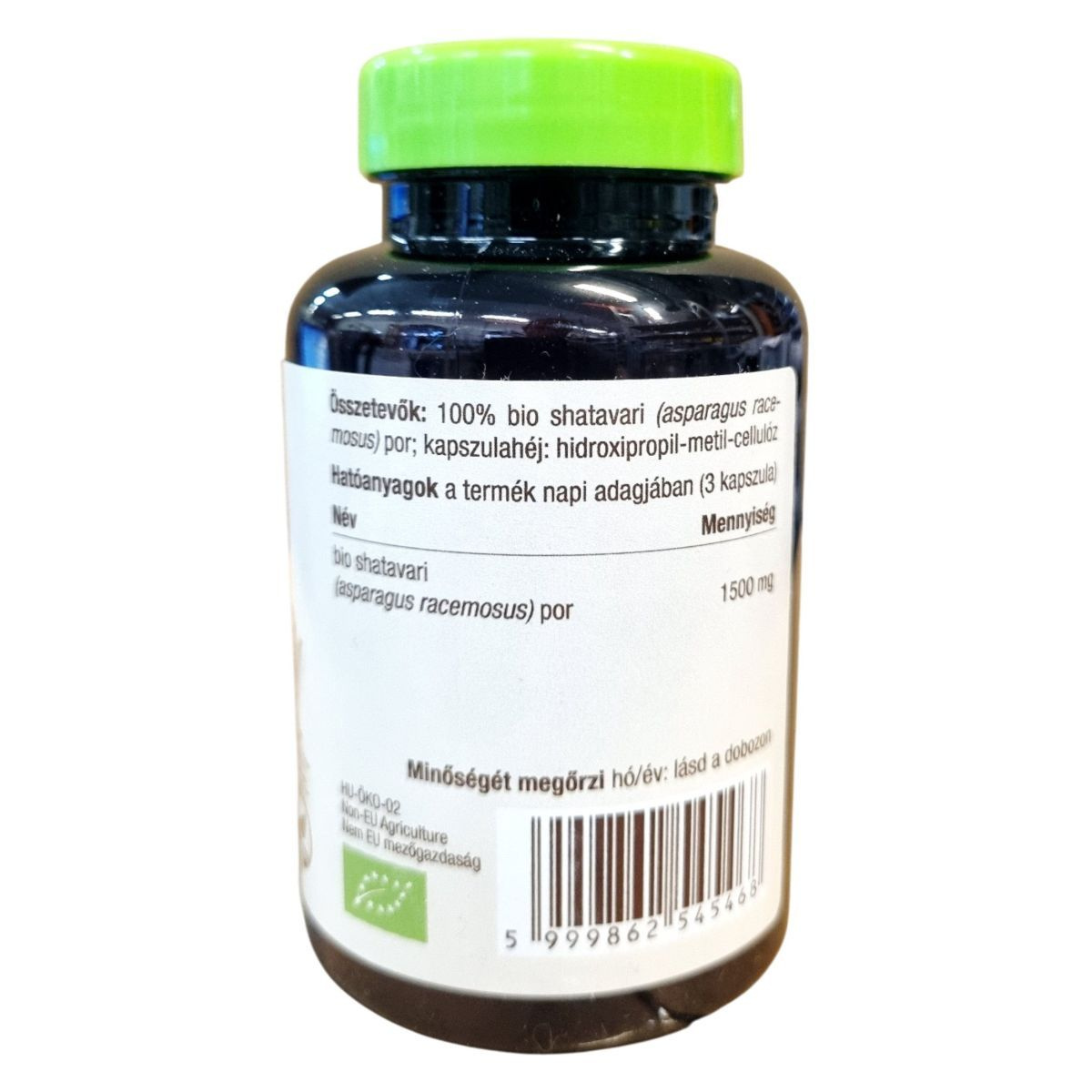 A BioMenü Shatavari kapszula egy organikus, nyers étrend-kiegészítő, amely 100% bio shatavari port tartalmaz. A termék napi adagja 1500 mg hatóanyagot biztosít, amely hozzájárulhat az általános jóléthez. A kapszulák hidroxipropil-metil-cellulóz kapszulahéjjal készülnek, így vegetáriánusok számára is alkalmasak lehetnek. A termék nem helyettesíti a kiegyensúlyozott táplálkozást és az egészséges életmódot. Származási helye India, és a Caleido IT-Outsource Kft. forgalmazza. A termék HU-ÖKO-02 tanúsítvánnyal rendelkezik, és a Notifikációs száma 34451/2024.
