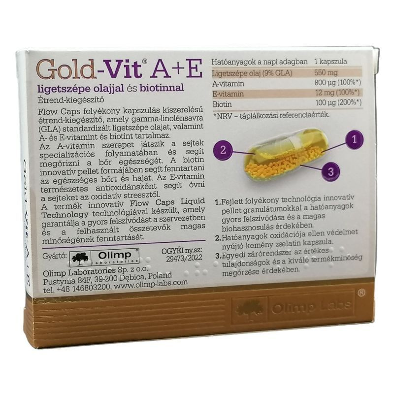 Összetevők: Ligetszépe olaj (Oenothera biennis L.), pellet összetevők: cukor, keményítő, D-biotin, kukoricaolaj,DL-alfa-tokoferol acetát., tokoferol mix- E-vitamin, retinil palmitát A vitamin, kapszula (zselatin)