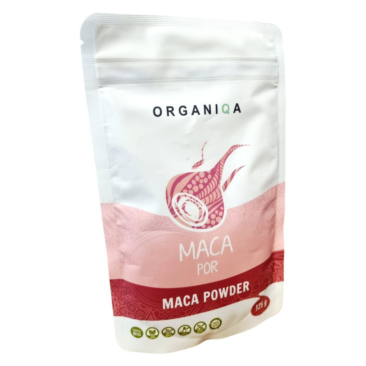 Az Organiqa Maca por egy 100% bio termék, amely a Lepidium meyenii növényből készül. A termék újrahasznosítható tasakban érkezik, amelyet a műanyag szelektív hulladékgyűjtőbe lehet dobni. A maca por nem EU-s származású, ellenőrzött ökológiai gazdálkodásból származik, és a Biokontroll Hungária Nonprofit Kft. által ellenőrzött. A termék forgalmazója az Organiqa Team Kft., amelynek székhelye Budapest, Tállya utca 30. A termék minőségét megőrzi a csomagoláson feltüntetett időpontig.