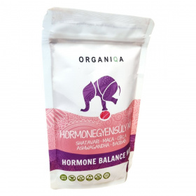 A HORMONEGYENSÚLY MIX egy 100% bio növényi keverék, amely shatavari, maca, cékla, ashwagandha és baobab porokat tartalmaz. Ezek az összetevők hozzájárulhatnak a hormonális egyensúly támogatásához.