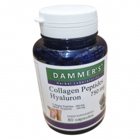 A DAMMER'S Collagen Peptides Hyaluron kapszula marhakollagént, halkollagént, hialuronsavat és MSM-et tartalmazhat, amelyek hozzájárulhatnak a bőr, ízületek és kötőszövetek egészségének támogatásához.