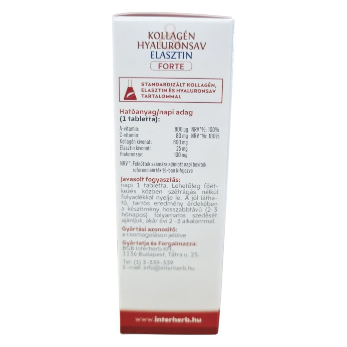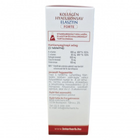 Az INTERHERB Kollagén Hyaluronsav Elasztin Forte tabletta egy korszerű, megemelt hatóanyag-tartalmú készítmény, amelyet a bőr egészségének és szépségének megőrzésére ajánlanak, különösen a 40+ korosztály számára. A termék kollagént, elasztint és hyaluronsavat tartalmaz, amelyek a bőr vázanyagaként fontos szerepet játszhatnak a bőr szerkezetének és hidratáltságának fenntartásában. A C-vitamin hozzájárulhat a megfelelő kollagén képződéshez, míg az A-vitamin a bőr és a nyálkahártyák egészségének megőrzésében játszhat szerepet. Az összetevők között található hidrolizált kollagén kivonat szarvasmarha eredetű, és a termék elsődleges összetevője Argentínából származik.
