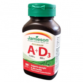 A Jamieson A+D3 vitamin étrend-kiegészítő lágy zselatin kapszula formájában érhető el, amely 10,000 IU A-vitamint és 800 IU D3-vitamint tartalmaz. Az A-vitamin hozzájárulhat a nyálkahártyák és a bőr normál állapotának fenntartásához, valamint a normál látás fenntartásához. A D-vitamin segíthet az egészséges csontozat és fogazat fenntartásában, valamint a kalcium és a foszfor normál felszívódásában és hasznosulásában. A termék nem tartalmaz keményítőt, glutént, laktózt, mesterséges színezékeket vagy ízesítőket, így különböző étrendi igényekhez is alkalmazkodhat.