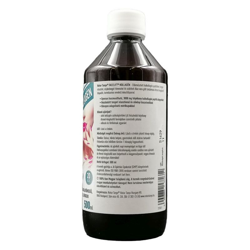 Figyelmeztetés: Használat elött felrázandó. Ne lépje túl az ajánlott napi fogyasztási mennyiséget! Hatóanyagokkal szembeni túlérzékenység esetén szedése nem ajánlott. Az étrend-kiegészítő nem helyettesíti a kiegyensúlyozott, vegyes étrendet és az egészséges életmódot. A termék fogyasztását kerüljék a tengeri halakra érzékeny emberek, mert a kollagént és az elasztint tengeri halak bőréből nyertük!