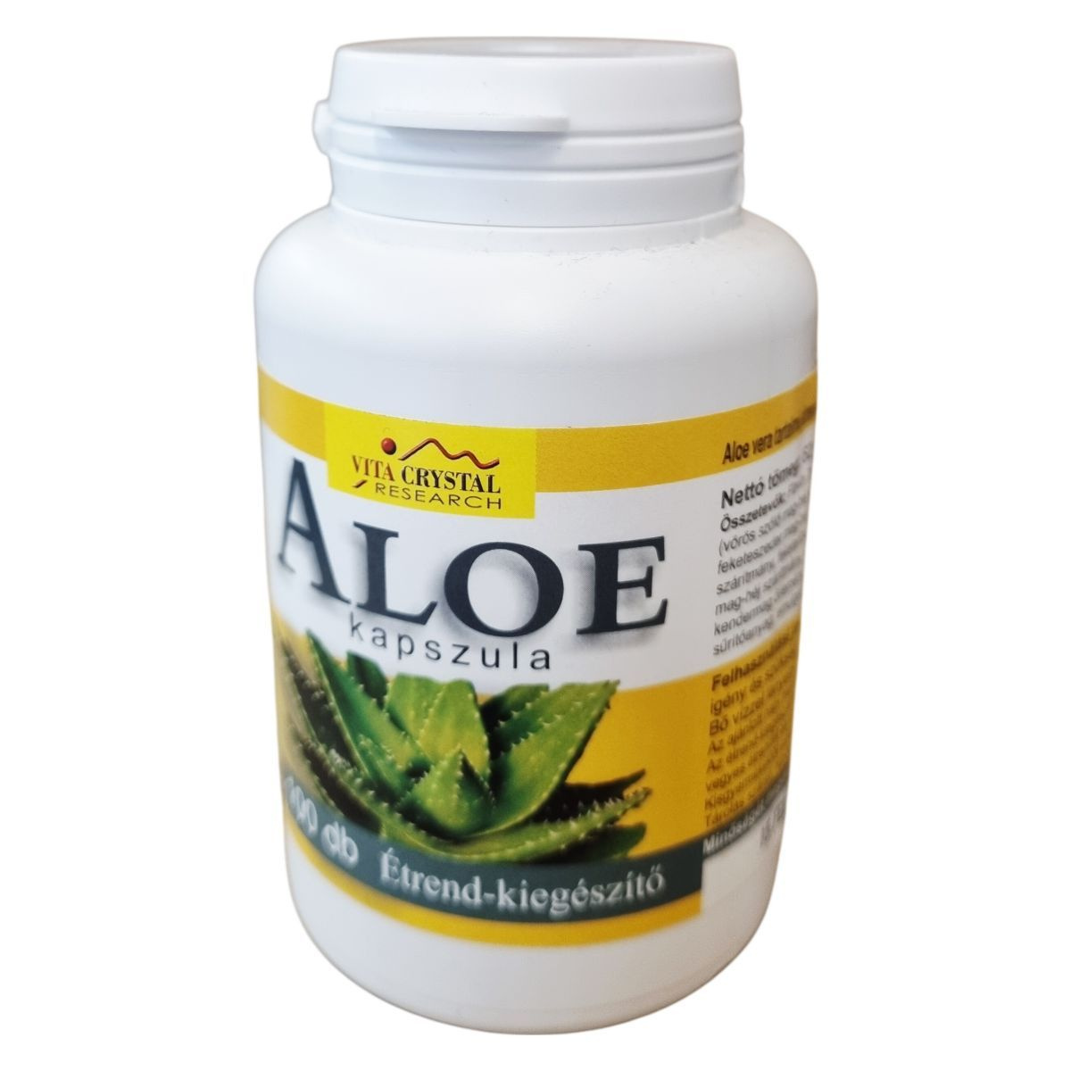 A VITA CRYSTAL RESEARCH ALOE kapszula egy 100 darabos kiszerelésű étrend-kiegészítő, amely összetett bioflavonoid komplexből és aloe vera porból áll. A Flavin 7 bioflavonoid komplex többféle gyümölcshéj és mag szárítmányát tartalmazza, emellett kendermag őrleményt és növényi alapú kapszulát használ. A termék az ajánlott adagban aloe vera szárított port, összes polifenolt, flavonoidokat és resveratrolt biztosít, amelyek hozzájárulhatnak az antioxidáns hatások támogatásához. Felhasználáskor 1 kapszula ajánlott napi bevitelként, szükség esetén maximum 2 kapszula. A kapszulákat bő vízzel kell lenyelni, és a terméket kisgyermekektől el kell zárni, továbbá fontos, hogy az étrend-kiegészítőt ne tekintsük a kiegyensúlyozott étrend vagy az egészséges életmód helyettesítőjének. A termék száraz, hűvös helyen tárolandó.