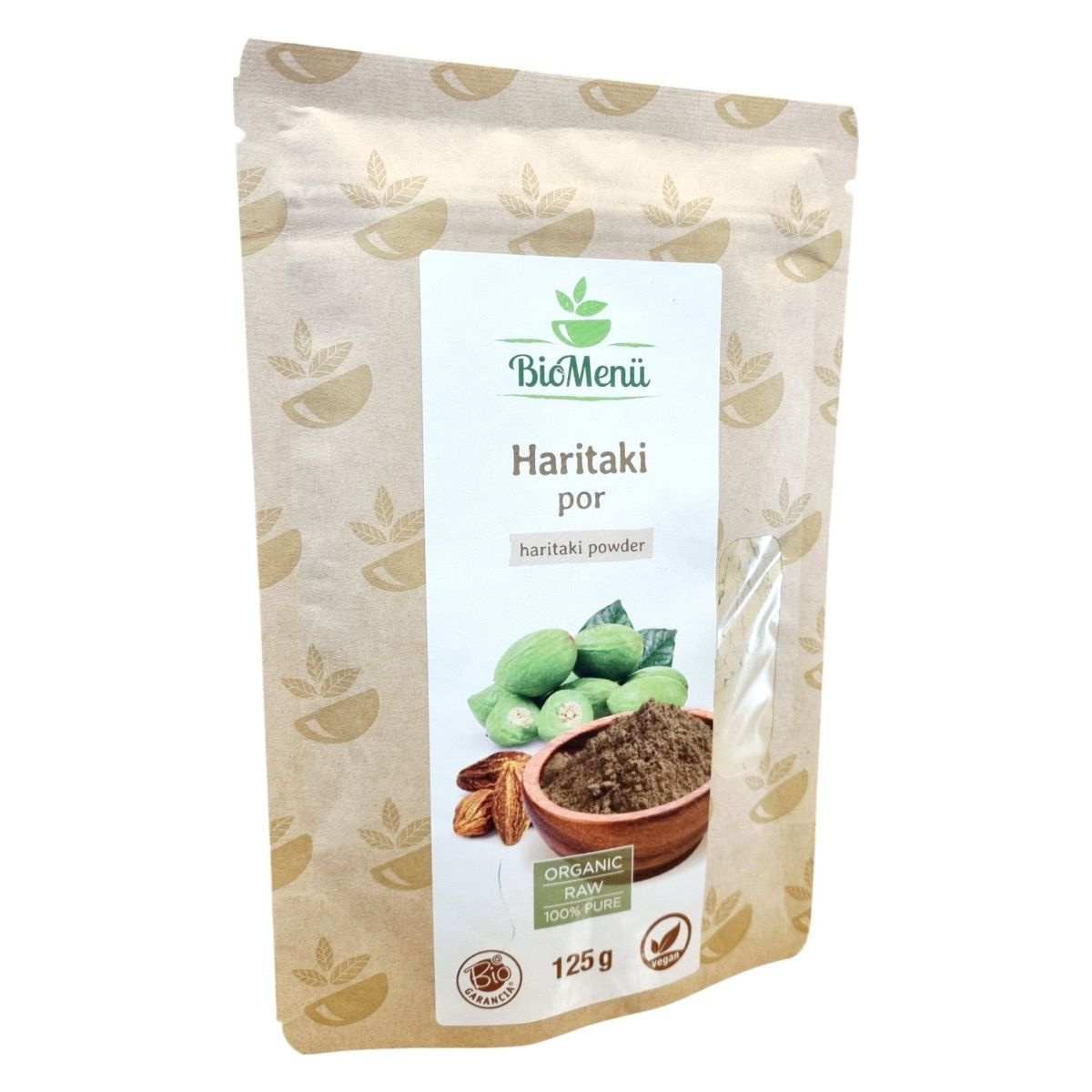 A BioMenü Haritaki por 100% bio haritaki (Terminalia chebula) összetevőt tartalmaz, amely támogathatja az egészséges életmódot. Az indiai cserzőgubacs por formájában érhető el, és vegán, bio és raw étrendi irányzatoknak is megfelelhet.