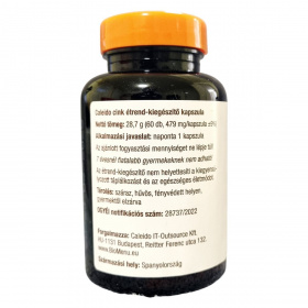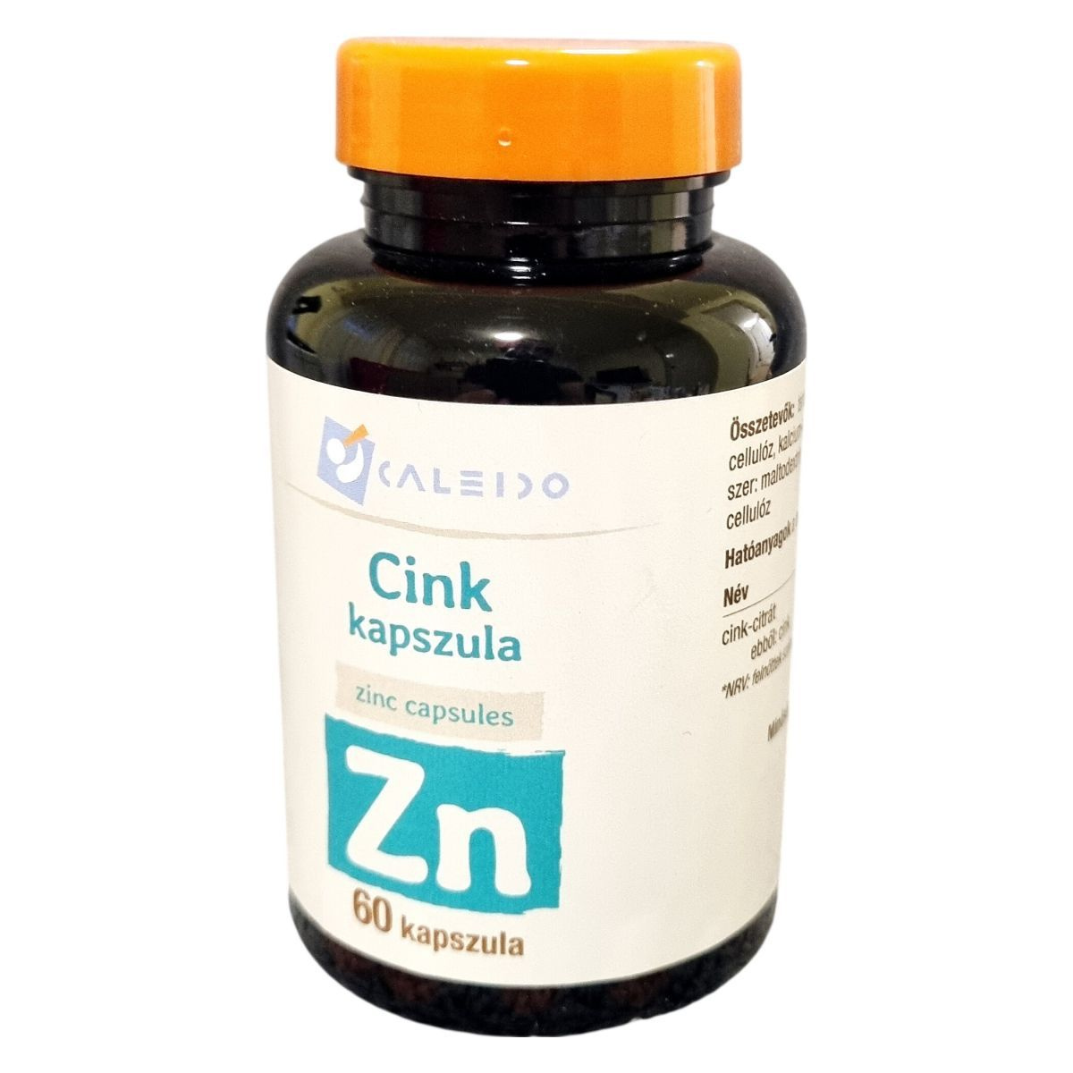 A Caleido cink kapszula nettó tömege 28,7 g, a doboz 60 darab, egyenként 479 mg tömegű kapszulát tartalmaz. A kapszula zöldség alapú, hidroxipropil-metil-cellulóz héjjal rendelkezik, így alkalmas lehet vegetáriánusok számára is. A termék spanyolországi származású és a csomagoláson megtalálható a vonalkód a könnyű azonosításhoz.