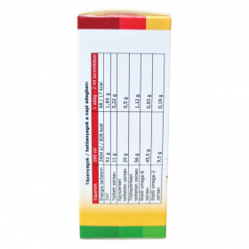 Zsír 1,85 g, ebből telített zsírsav 0,22 g, egyszeresen telítetlen zsírsav 0,5 g, többszörösen telítetlen zsírsav 1,12 g