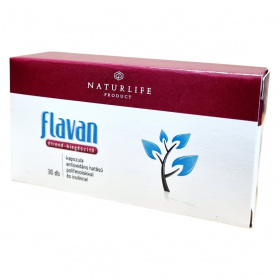 A NATURLIFE flavan étrend-kiegészítő kapszula antioxidáns hatású polifenolokat és inulint tartalmazhat, amelyek hozzájárulhatnak a szervezet védelméhez az oxidatív stressz ellen. Az összetevők között megtalálható a szárított szőlő őrlemény, inulin, zselatin, valamint szárított feketeribizli-, feketeszeder-, és feketekersesznye őrlemény. A termék napi kettő kapszula fogyasztását javasolja étkezés előtt, és figyelmeztet, hogy az ajánlott napi fogyasztási mennyiséget ne lépjük túl. A termék nem helyettesíti a kiegyensúlyozott vegyes étrendet és az egészséges életmódot, és kisgyermekek elől elzárva tartandó. Forgalmazója a SZV&M Kft., és az OÉTI engedélyszáma 5526/2009.