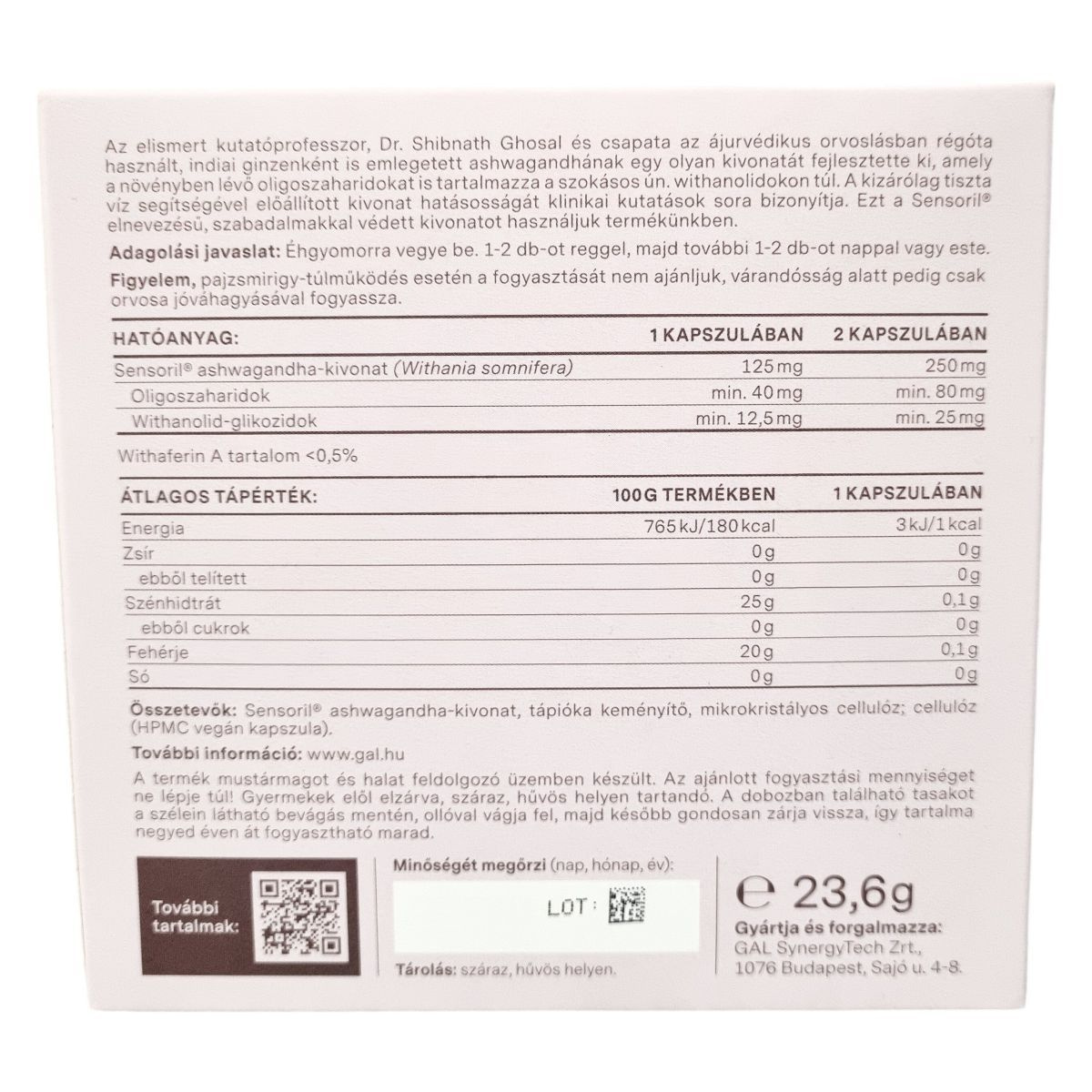 Withanolid-glikozidok – min. 12,5 mg / min. 25 mg