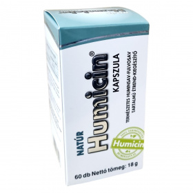 A NATÚR Humicin® kapszula egy természetes huminsav-fulvosav tartalmú étrend-kiegészítő, amely 60 db kapszulát tartalmaz, összesen 18 g nettó tömegben. A termék Humicin porból áll, amely huminsav-fulvosavat tartalmaz, továbbá kapszula alapanyaga hydroxi-propil-cellulóz és csomósodásgátló anyagként zsírsavak magnéziumsóit. A napi ajánlott adag 2x1 kapszula, amelyet étkezések előtt, bőséges folyadékkal célszerű bevenni. A termék nem helyettesíti a változatos és kiegyensúlyozott étrendet, illetve az egészséges életmódot. Tárolása száraz, hűvös és fényvédett helyen ajánlott, gyermekektől elzárva. A terméket a HUMIC 2000 Kft. gyártja és forgalmazza Budapesten.