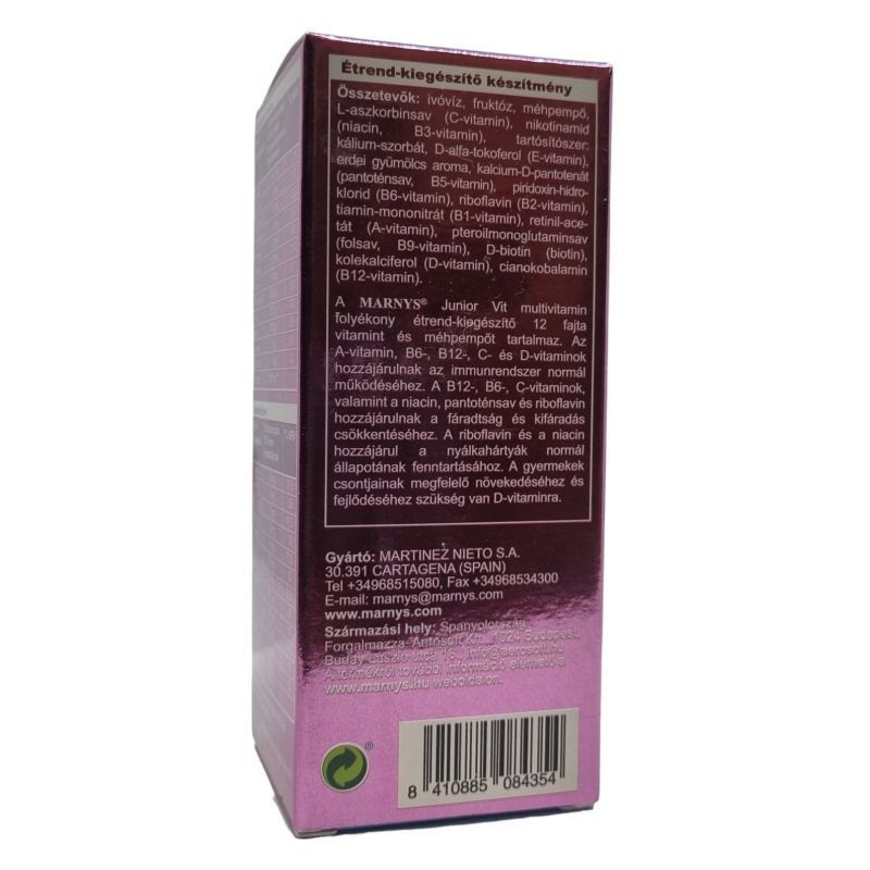 A Marnys Junior Vit elsőrorban a gyermekek részére készült, 12 féle vitamint tartalmazó, laktóz-és gluténmentes, iható táplálékkiegészítő. A 12 féle vitamin gondosan összeválogatott komplex, A-, B-, D és C vitaminokkal, amelyek egymással szinergiában támogatják az immunrendszer megfelelő működését. Különlegessége a folyékony méhpempő tartalom. A folyékony méhpempő életelixír, mely segít az immunerősítésben, a szellemi frissesség és hormonális egyensúly, valamint a fizikai erőnlét biztosításában. A Marnys Junior Vit kimondottan a gyermekek ízlésének alkotott termék erdei gyümölcs ízesítéssel, így téve élvezetessé a reggeli vitaminfeltöltést.
