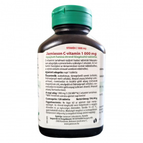 A Jamieson C-vitamin 1000 mg nyújtott hatású étrend-kiegészítő tabletta egy speciális időzített felszabadulású formula, amely fokozatosan adagolhatja a szervezet számára a szükséges C-vitamint. A C-vitamin hozzájárulhat az immunrendszer normál működéséhez és a sejtek oxidatív stresszel szembeni védelméhez. A termék nem tartalmaz cukrot, keményítőt, glutént, laktózt, mesterséges színezéket, ízesítőt vagy tartósítószert, így vegetáriánus étrendbe is beilleszthető. A tablettákat 15–25 °C között, gyermekektől elzárva kell tárolni. A gyártó Jamieson Laboratories, a forgalmazó pedig az INTERPHARM Hungary Kft.