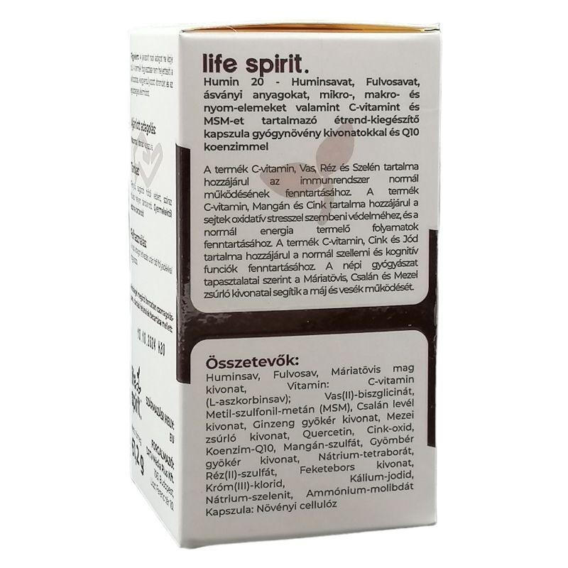 Huminsavat, fulvosavat, ásványi anyagokat, nyomelemeket, C-vitamint, MSM-et és Q10 koenzimet tartalmazó étrend-kiegészítő, amely hozzájárulhat az immunrendszer, a sejtvédelem, a szellemi teljesítmény és a máj működésének támogatásához.