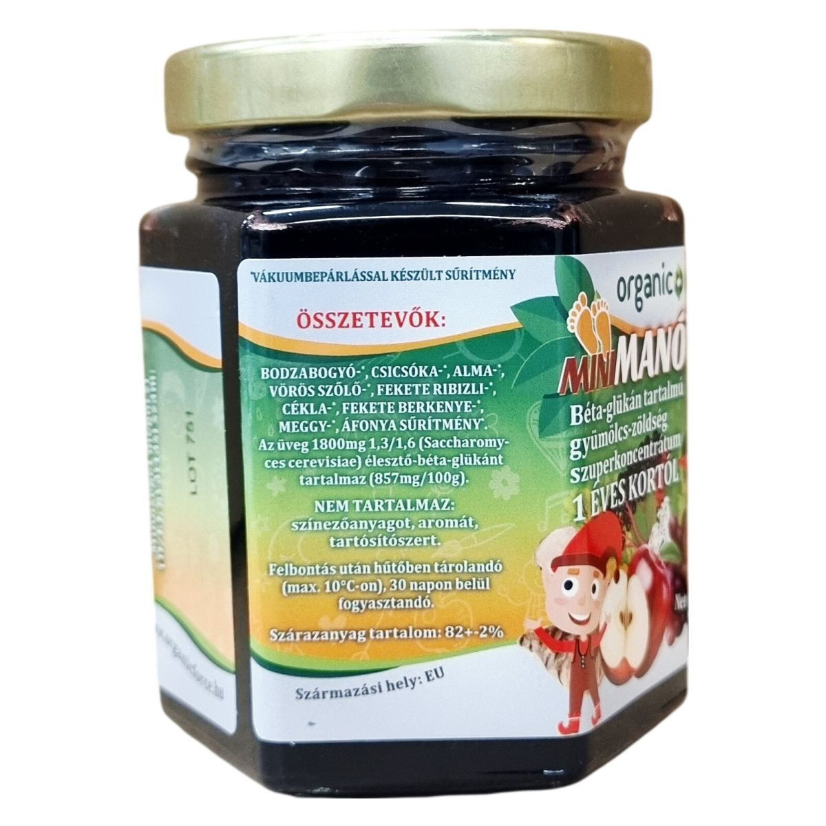 A Mini Manó Manna egy vákuumbepárlással készült gyümölcs- és zöldségsűrítmény, amely az Európai Unió területén készült. Nem tartalmaz színezőanyagot, aromát, tartósítószert. A termék természetes alapanyagokból, többféle gyümölcsből és zöldségből áll, valamint speciális élesztő-béta-glükánnal egészül ki, amely egyedi tápanyagforrást jelent. Az adagolási útmutató betartása ajánlott, különös tekintettel a kisgyermek-korú fogyasztókra. A tárolási és felhasználási előírások szigorú betartása biztosíthatja a termék minőségének megőrzését.