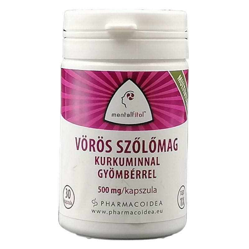 A kapszula hatóanyagai részt vesznek az immunrendszer normál működésében, a kurkuma és a vitaminok ezen felül támogatják az idegrendszer egészséges működését is. A vörös szőlő magja az egészségre számos jótékony hatással bíró polifenolok egyik leggazdagabb természetes forrása, melynek köszönhetően a szőlőmag fogyasztása segíti az idegrendszer működését. Vörös szőlőmag étrend-kiegészítő kurkuma kivonattal, gyömbérrel és vitaminokkal, magas polifenol tartalommal. 30 kapszula. 500mg/kapszula.
