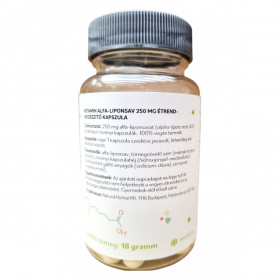 Egy kapszula 250 mg alfa-liponsavat tartalmaz, amely antioxidáns tulajdonságai révén támogathatja a szervezet egészségét. A termék vegán, így növényi alapú étrendbe is beilleszthető.
