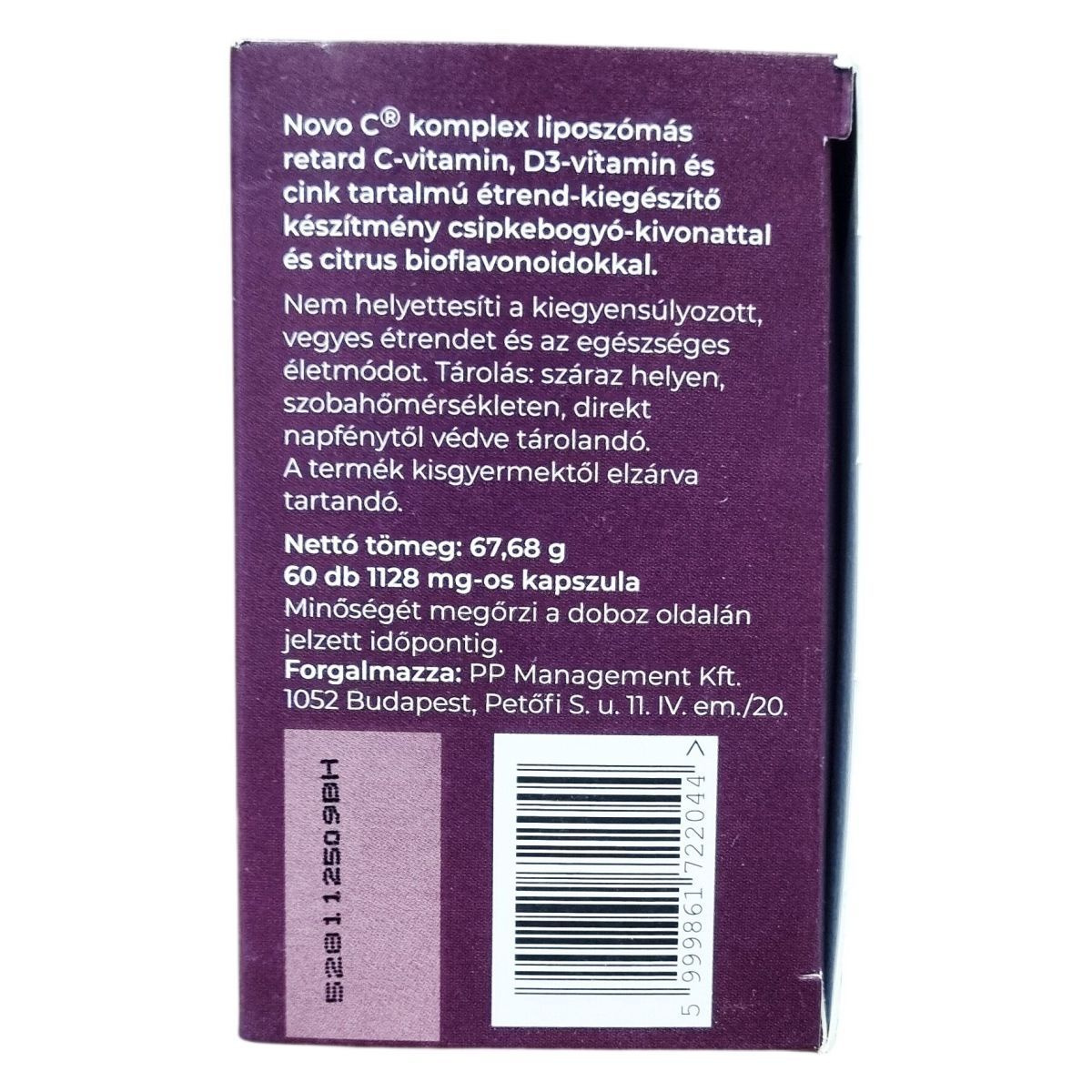 A Novo C® komplex a hagyományos készítményektől eltérően liposzómás bevonattal készült, amely egy természetes foszfolipid réteget képez a C-vitamin, D3-vitamin és cink hatóanyagok körül. Ez a védőburok segítheti a hatóanyagok hatékonyabb sejtbe jutását. A termék hozzájárulhat az immunrendszer normál működéséhez, a sejtek oxidatív stresszel szembeni védelméhez, a fáradtság csökkentéséhez és a normál pszichológiai funkció fenntartásához. A csipkebogyó-kivonat és a citrus bioflavonoidok természetes összetevői a komplexnek, amelyek további támogatást nyújthatnak az egészség megőrzéséhez. A készítmény 8 éves kortól ajánlott, és napi 1-2 kapszula fogyasztása javasolt bő folyadékkal, lehetőleg reggel.