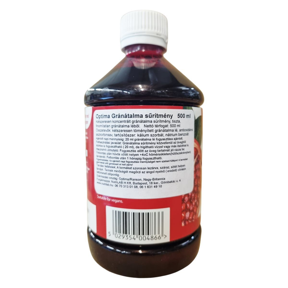 A gránátalma évszázadokon át legendás gyümölcsként ismert, amelyet ma étrend-kiegészítő formában kínálnak. Az Optima koncentrált gránátalma sűrítmény vörös szőlőlével készült és tartalmaz kálium-szorbátot, nátrium-benzoátot mint tartósítószert, illetve aszkorbinsavat antioxidánsként. A termék vegánok számára is alkalmas, és környezetbarát csomagolásban érkezik, megközelítőleg 20 adagot tartalmaz egy palack. A gránátalma és a vörös szőlő összetevői nem brit származásúak, míg a termék Nagy-Britanniában készül.