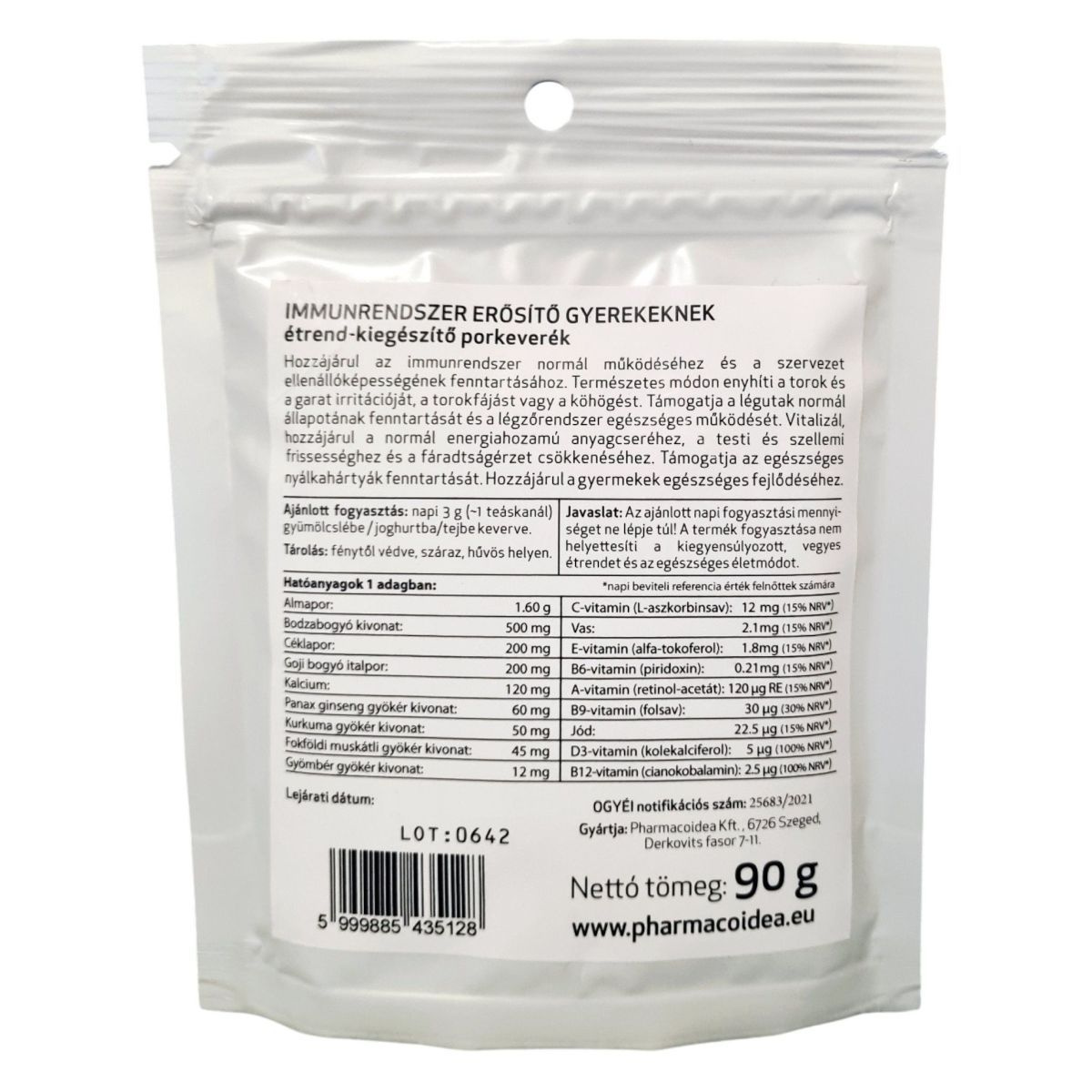 Az ajánlott napi fogyasztási mennyiséget ne lépje túl! A termék fogyasztása nem helyettesíti a kiegyensúlyozott, vegyes étrendet és az egészséges életmódot.