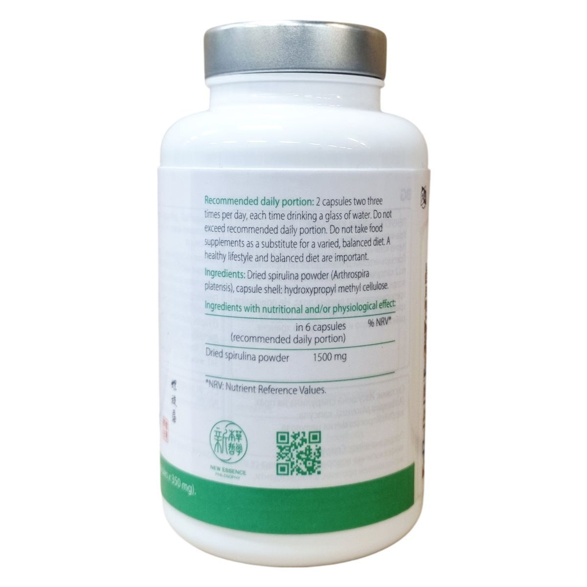Szárított spirulina por (Arthrospira platensis) 1500 mg (6 kapszulában)