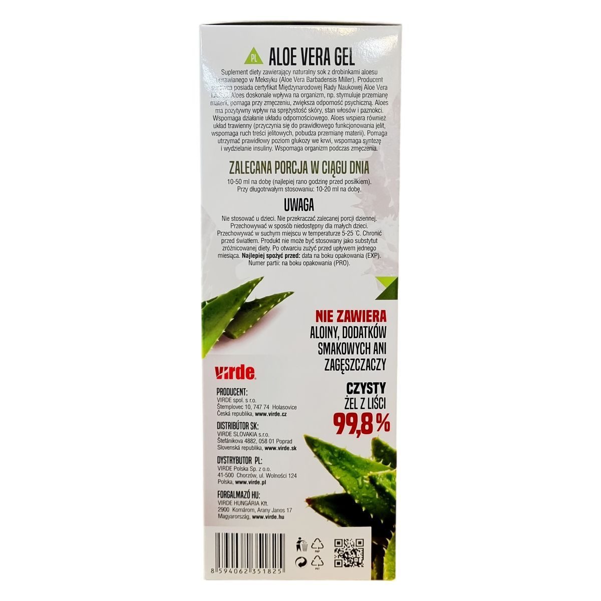 A termék természetes aloe vera gél apró darabokkal, amely elősegítheti az immunrendszer harmonizálását, támogathatja az emésztőrendszer és a bőr megfelelő működését, valamint hozzájárulhat a szervezet regenerálódásához és méregtelenítéséhez.