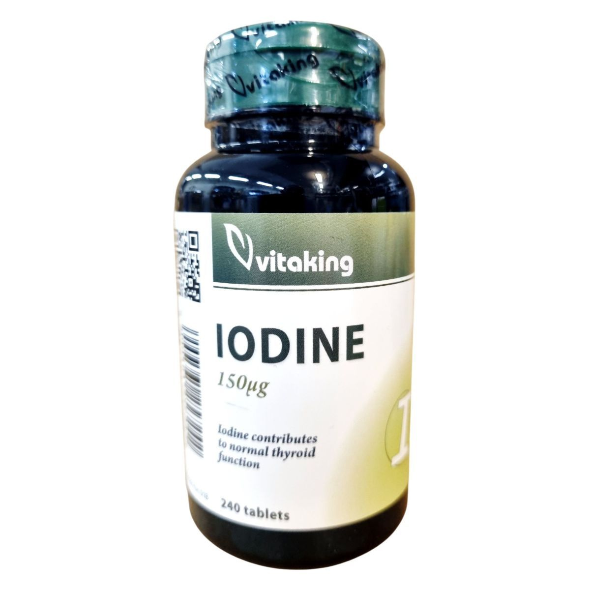 A Vitaking IODINE étrend-kiegészítő 240 tablettát tartalmaz, melyek mindegyike 150µg jódot biztosít tengeri moszatból. A jód hozzájárulhat a pajzsmirigy normál működéséhez, ami fontos lehet a szervezet hormonális egyensúlyának fenntartásában. A termék emulgeálószereket, stabilizátort és fényvédőanyagot is tartalmaz, hogy biztosítsa a tabletták stabilitását és hatékonyságát. A termék minőségét a doboz oldalán jelzett időpontig őrzi meg, és fontos, hogy a tárolási útmutatót betartva, gyermekektől elzárva, száraz, hűvös helyen tartsuk.