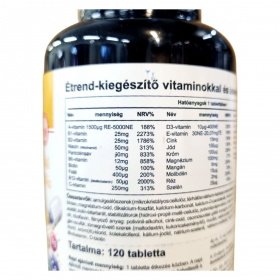 A multivitamin több vitamint és gyakran ásványi anyagot tartalmazó kombinált étrend-kiegészítő készítmény, amely a mikrotápanyag-bevitel kiegészítésére szolgál. Összetételétől függően tartalmazhat vízoldékony vitaminokat (például B-vitaminok, C-vitamin), zsírban oldódó vitaminokat (A-, D-, E-, K-vitamin), valamint nyomelemeket. Biokémiai szinten a vitaminok kofaktorként vesznek részt enzimreakciókban, antioxidáns védelemben és hormonális szabályozásban. A multivitamin alkalmazása olyan élethelyzetekben merülhet fel, amikor az étrend nem biztosít megfelelő mikrotápanyag-ellátottságot. Megfelelő adagolás mellett általában biztonságos, ugyanakkor a zsírban oldódó vitaminok túlzott bevitele kockázatot jelenthet. Egyéni egészségügyi állapot vagy gyógyszerszedés esetén javasolt szakemberrel konzultálni.