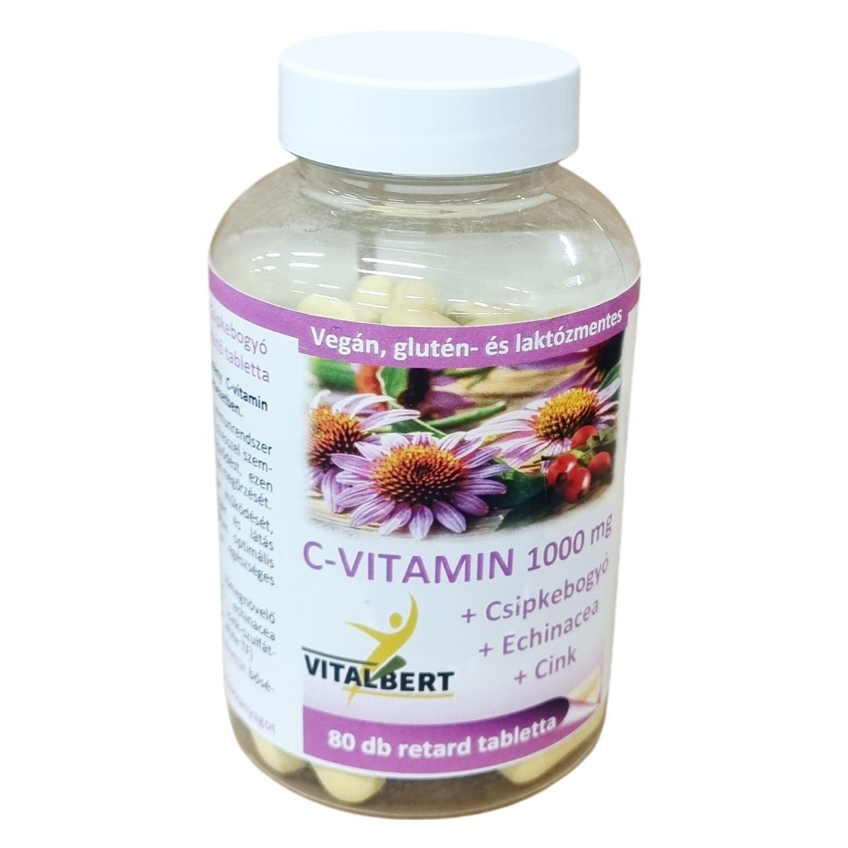 1000 mg C-vitamin retard tabletta csipkebogyóval, bíbor kasvirággal és cinkkel.
