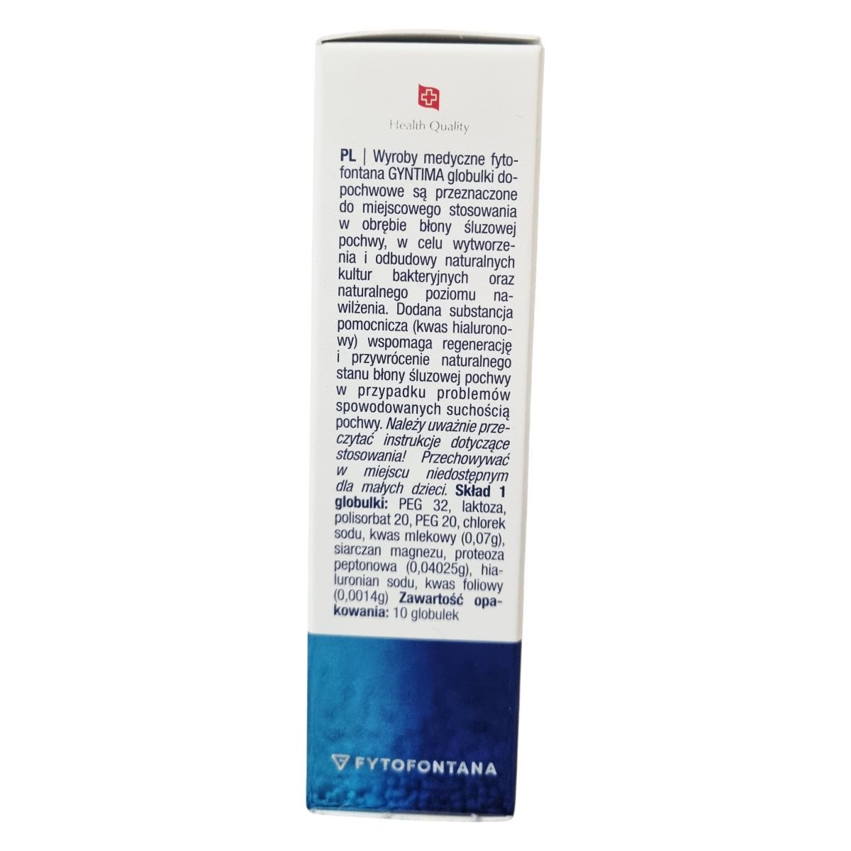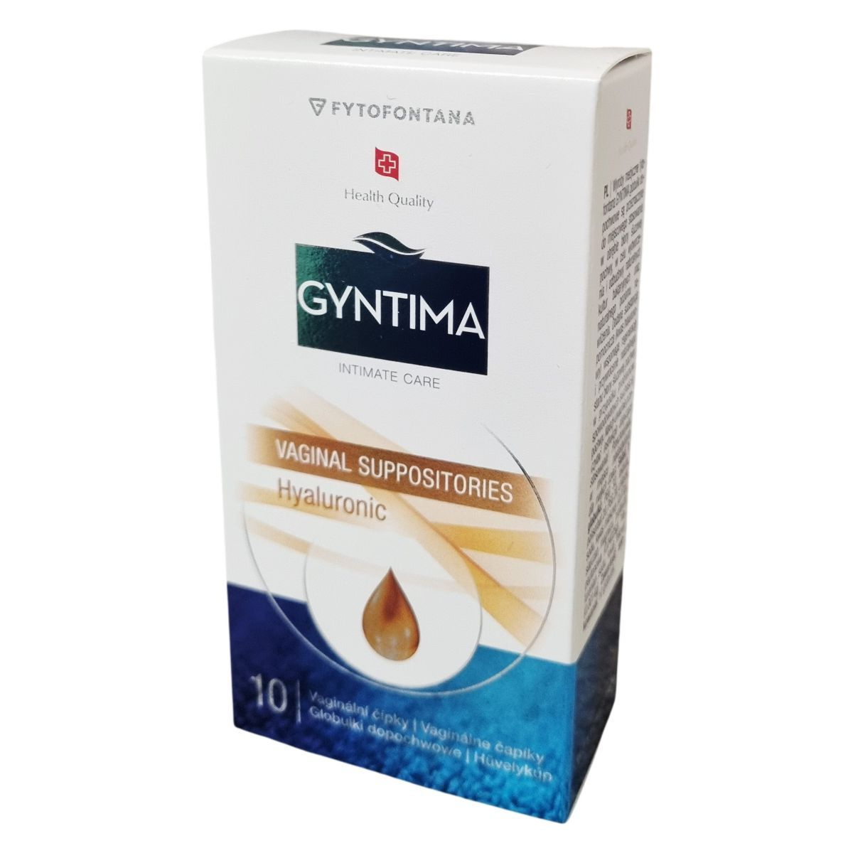A Fytofontana Gyntima hialuronsavas hüvelykúp intim kozmetikai készítmény, amelyet a hüvely nyálkahártyájának ápolására fejlesztettek ki. A készítmény alkalmazása hozzájárul a természetes bakteriális környezet és a megfelelő nedvességtartalom fenntartásához, valamint a hüvelyszárazság okozta kellemetlen érzetek mérsékléséhez. A csomag 10 darab hüvelykúpot tartalmaz.