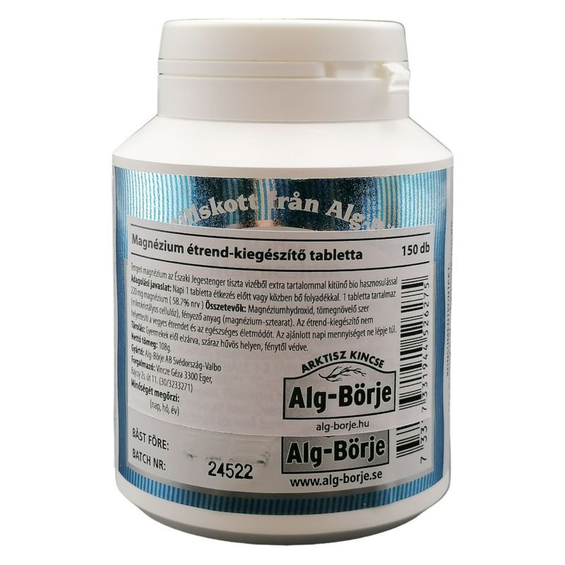 Tengeri magnézium az Északi Jeges tenger tiszta vizéből extra tartalommal kitűnő bio hasznosulással. Adagolási javaslat : Napi 1 tabletta étkezés előtt vagy közben bő folyadékkal.